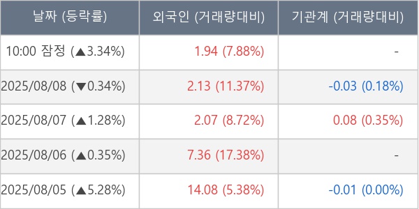 [표] 외국인ㆍ기관 순매매량 (단위 만주)