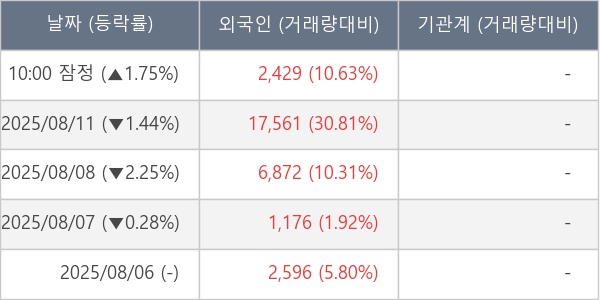 [표] 외국인ㆍ기관 순매매량 (단위 주)