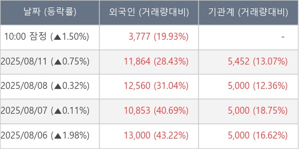 [표] 외국인ㆍ기관 순매매량 (단위 주)