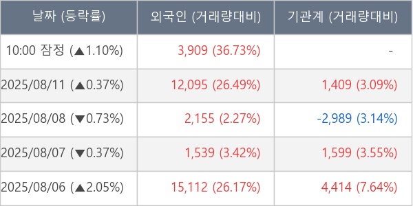[표] 외국인ㆍ기관 순매매량 (단위 주)