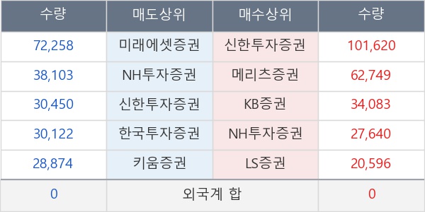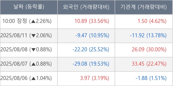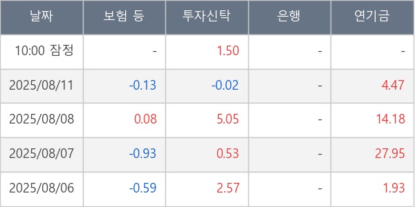 [표] 주요 기관별 순매매량 (단위 만주)