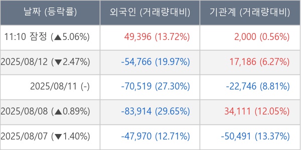 ※ 사모펀드 등 일부 기관의 순매매량은 표시되지 않음