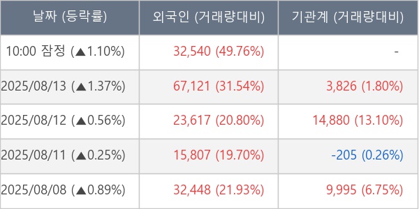 [표] 외국인ㆍ기관 순매매량 (단위 주)