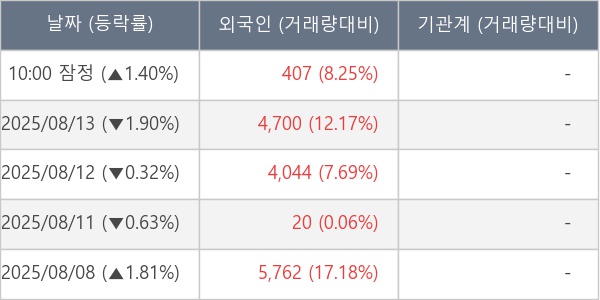 [표] 외국인ㆍ기관 순매매량 (단위 주)