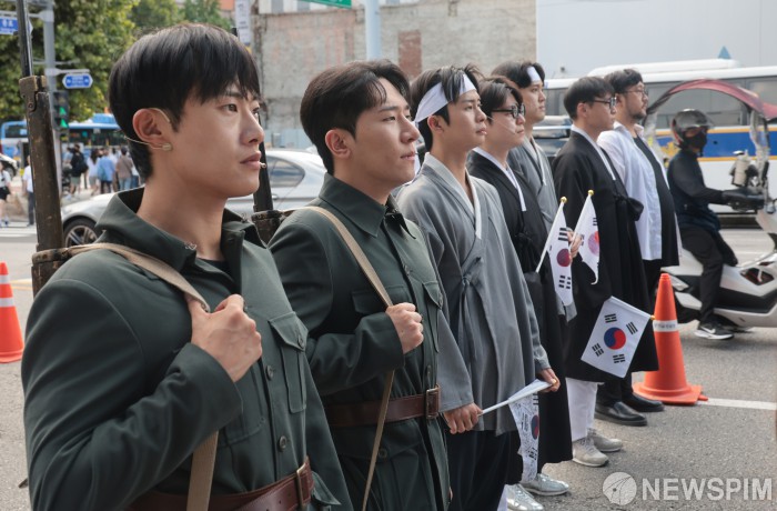 [서울=뉴스핌] 이길동 기자 =광복 80주년 광복절인 15일 오후 서울 종로구 탑골공원에서 광복회 주최로 열린 ‘국민과 함께하는 광복대행진’에서 참가자들이 광화문 광장을 향한 행진 시작을 기다리고 있다.2025.08.15. gdlee@newspim.com