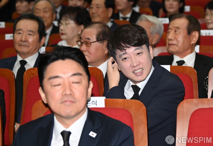 [서울=뉴스핌] 김학선 기자 = 이준석 개혁신당 대표가 18일 서울 동작구 국립서울현충원 현충관에서 열린 '김대중 전 대통령 서거 16주기 추모식'에 참석하고 있다. 2025.08.18 yooksa@newspim.com