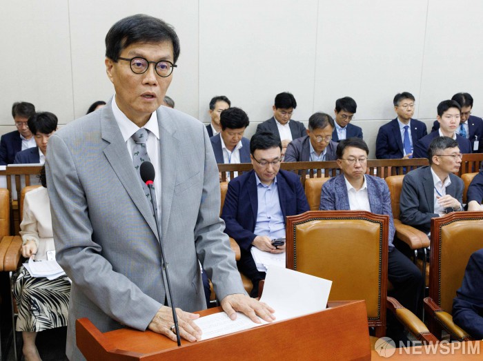 [서울=뉴스핌] 윤창빈 기자 = 이창용 한국은행 총재가 19일 오전 서울 여의도 국회에서 열린 기획재정위원회 전체회의에서 인사말을 하고 있다. 2025.08.19 pangbin@newspim.com