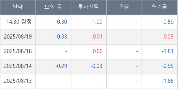 [표] 주요 기관별 순매매량 (단위 주)