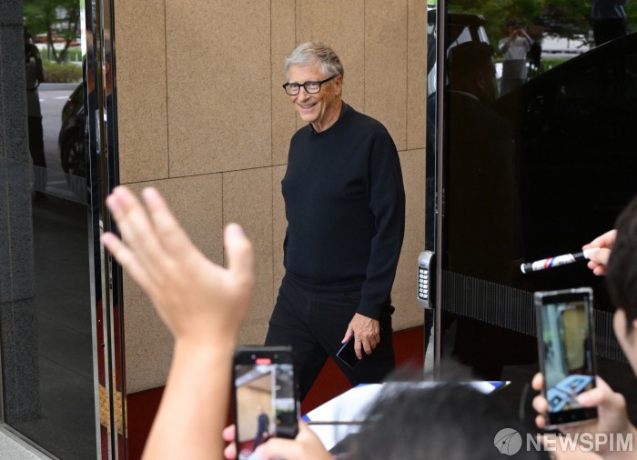 [서울=뉴스핌] 최지환 기자 = 마이크로소프트 창업자인 빌 게이츠가 20일 오후 서울 강서구 서울김포비즈니스항공센터를 통해 입국하고 있다. 2025.08.20 choipix16@newspim.com