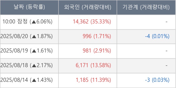 [표] 외국인ㆍ기관 순매매량 (단위 주)