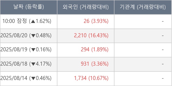 [표] 외국인ㆍ기관 순매매량 (단위 주)
