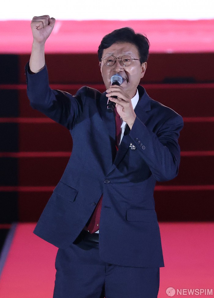 [청주=뉴스핌] 정일구 기자 = 손범규 국민의힘 최고위원 후보가 22일 오후 충북 청주 오스코에서 열린 국민의힘 제6차 전당대회에서 비전발표를 하고 있다. 2025.08.22 mironj19@newspim.com