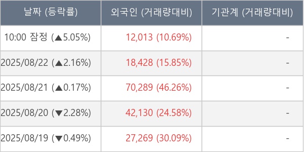 [표] 외국인ㆍ기관 순매매량 (단위 주)
