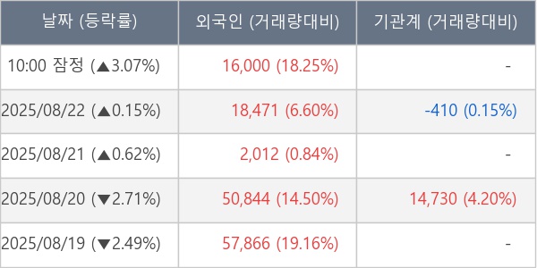 [표] 외국인ㆍ기관 순매매량 (단위 주)