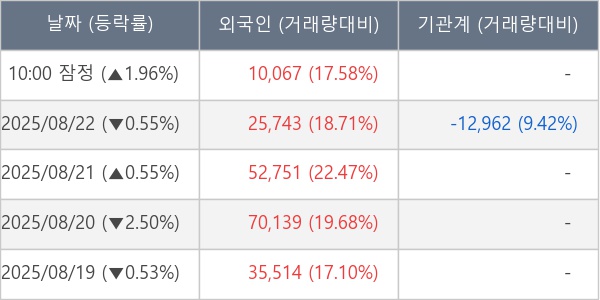 [표] 외국인ㆍ기관 순매매량 (단위 주)