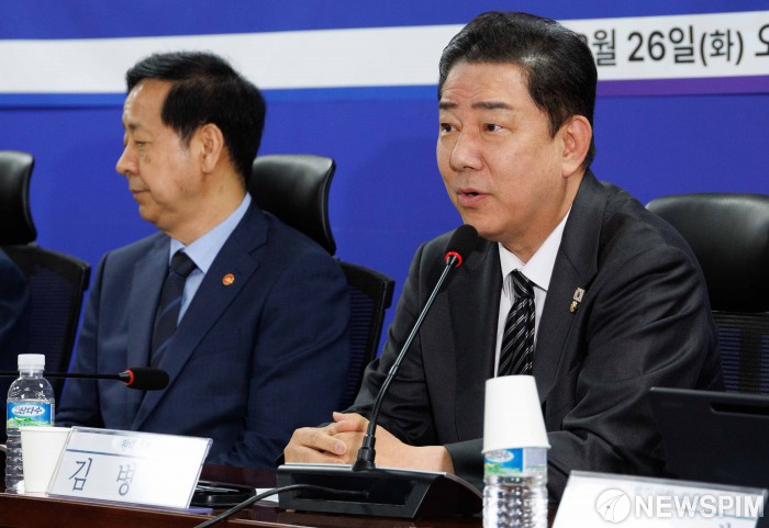 [서울=뉴스핌] 윤창빈 기자 = 김병기 더불어민주당 원내대표가 26일 오전 서울 여의도 국회 의원회관에서 열린 2026년 예산안 당정협의에서 모두발언을 하고 있다. 2025.08.26 pangbin@newspim.com