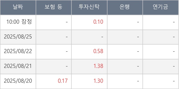 [표] 주요 기관별 순매매량 (단위 만주)