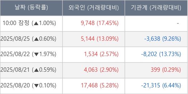 [표] 외국인ㆍ기관 순매매량 (단위 주)