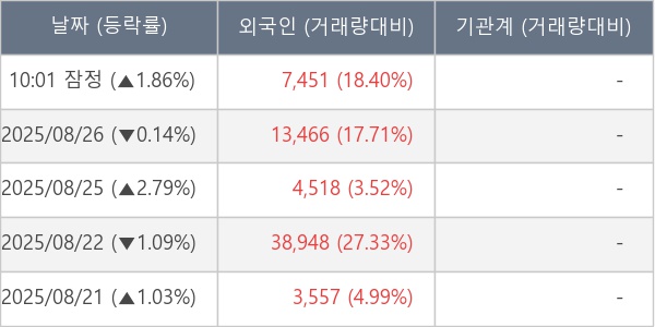 [표] 외국인ㆍ기관 순매매량 (단위 주)