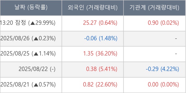 [장중수급포착] 앱코, 외국인/기관 동시 순매수… 주가 +29.99%
