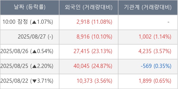 [표] 외국인ㆍ기관 순매매량 (단위 주)