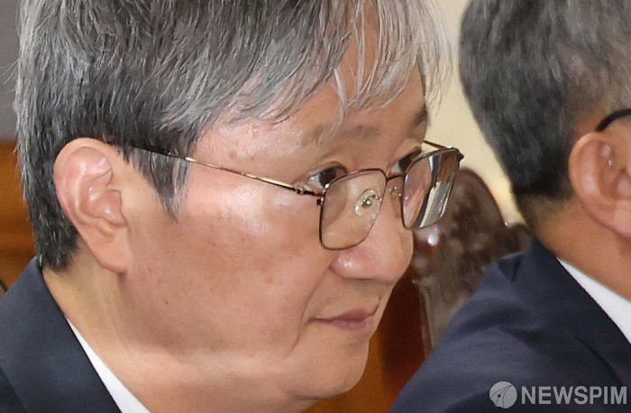 [서울=뉴스핌] 양윤모 기자 = 이찬진 금융감독원장이 취임 2주 만에 28일 오후 서울 중구 은행회관에서 개최된 첫 국내 은행장 간담회에 참석 회의를 기다리고 있다. 이 자리에는 조용병 은행연합회장,이환주 KB국민은행장, 정상혁 신한은행장, 이호성 하나은행장, 정진완 우리은행장, 김성태 기업은행장, 강태영 NH농협은행장 등 시중은행과 지방은행,인터넷은행의 은행장이 참석했다. 2025.08.28 yym58@newspim.com