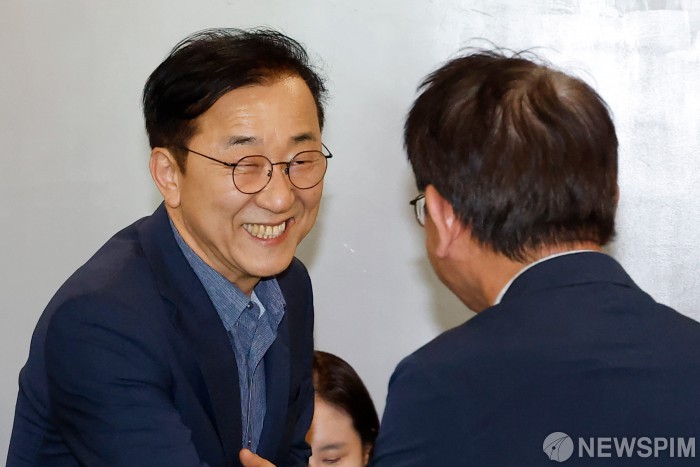 [서울=뉴스핌] 류기찬 기자 = 김윤덕 국토교통부 장관이 28일 오후 서울 영등포구 켄싱턴호텔 여의도에서 열린 'LH 개혁위원회 출범식‘에서 참석자들과 인사를 나누고 있다. 2025.08.28 ryuchan0925@newspim.com