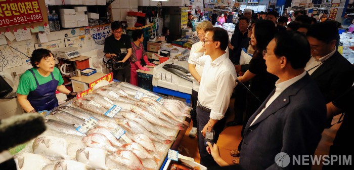 [서울=뉴스핌] 류기찬 기자 = 전재수 해양수산부 장관이 29일 오전 서울 노량진 수산시장에 방문해 수산물 물가 동향 점검을 하고 있다. 2025.08.29 ryuchan0925@newspim.com