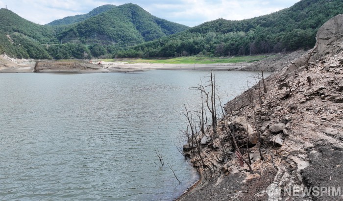 [강릉=뉴스핌] 최지환 기자 = 강릉에 극심한 가뭄이 계속되는 29일 강원 강릉시 오봉저수지에서 수몰된 나무가 드러나 있다. 강릉의 주 상수원인 오봉저수지의 저수율은 29일 기준 15.7%까지 떨어지며 역대 최저치를 갱신하고 있다. 2025.08.29 choipix16@newspim.com