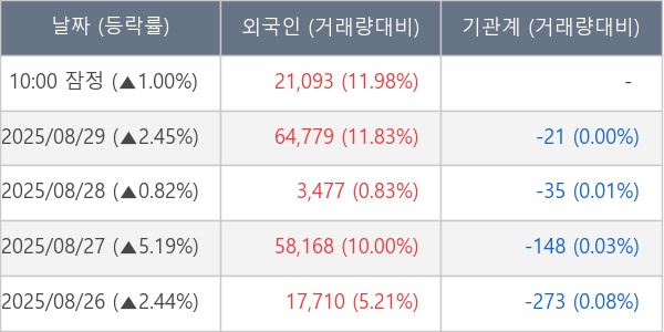 [표] 외국인ㆍ기관 순매매량 (단위 주)