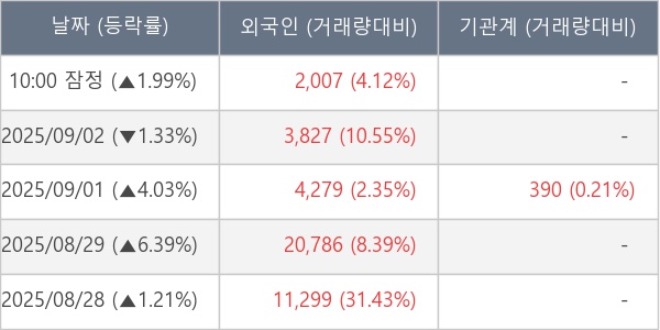 [표] 외국인ㆍ기관 순매매량 (단위 주)