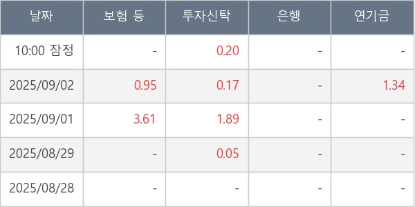[표] 주요 기관별 순매매량 (단위 만주)