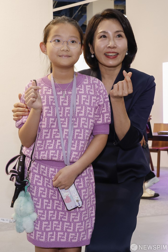 [서울=뉴스핌] 정일구 기자 = 이재명 대통령 부인 김혜경 여사가 3일 오전 서울 강남구 코엑스에서 열린 '키아프 서울 2025' 페어 투어 행사에서 한 어린이와 기념촬영을 하고 있다. 2025.09.03 mironj19@newspim.com