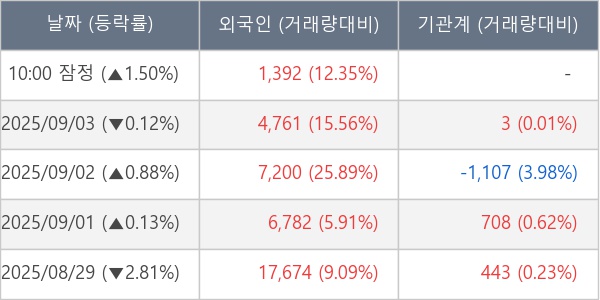 [표] 외국인ㆍ기관 순매매량 (단위 주)