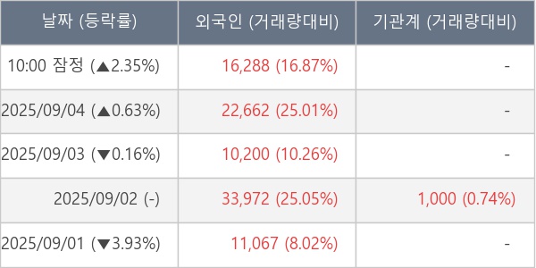 [표] 외국인ㆍ기관 순매매량 (단위 주)