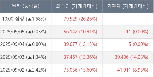 [표] 외국인ㆍ기관 순매매량 (단위 주)