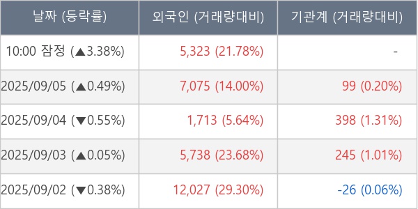 [표] 외국인ㆍ기관 순매매량 (단위 주)