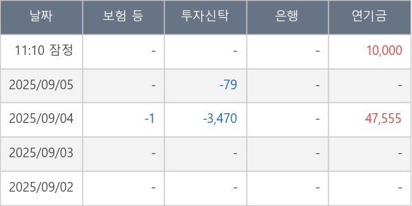 [표] 주요 기관별 순매매량 (단위 주)