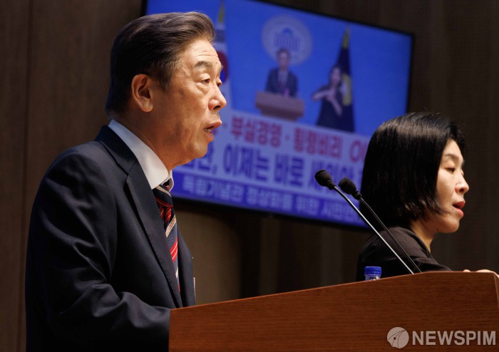 [서울=뉴스핌] 윤창빈 기자 = 김형석 독립기념관장이 8일 오전 서울 여의도 국회 소통관에서 대국민 호소문 발표를 하고 있다. 2025.09.08 pangbin@newspim.com