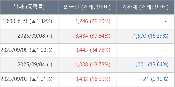 [표] 외국인ㆍ기관 순매매량 (단위 주)