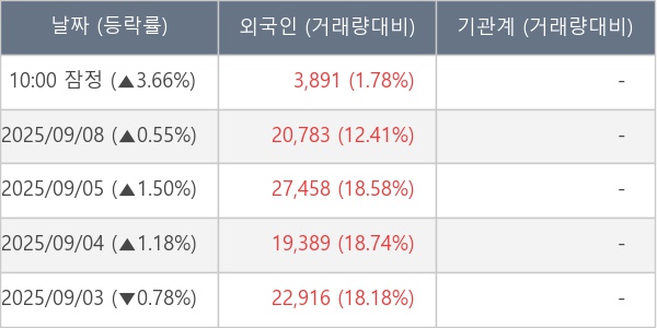 [표] 외국인ㆍ기관 순매매량 (단위 주)