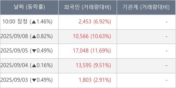 [표] 외국인ㆍ기관 순매매량 (단위 주)