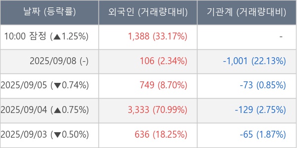 [표] 외국인ㆍ기관 순매매량 (단위 주)