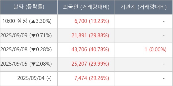 [표] 외국인ㆍ기관 순매매량 (단위 주)
