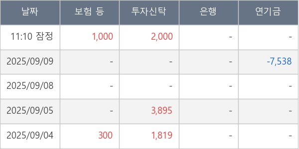 [표] 주요 기관별 순매매량 (단위 주)