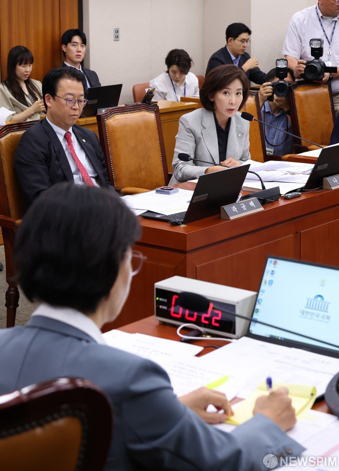 [서울=뉴스핌] 정일구 기자 = 나경원 국민의힘 의원이 10일 오후 서울 여의도 국회에서 열린 법사위원회 전체회의에서 의사진행 발언을 하고 있다. 2025.09.10 mironj19@newspim.com