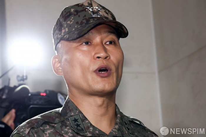 [서울=뉴스핌] 최지환 기자 = 이종섭 전 국방부 장관 참모진이었던 박진희 전 군사보좌관이 11일 오전 서울 서초구 순직해병 특별검사팀 사무실에 피의자 조사를 위해 출석하며 심경을 밝히고 있다. 2025.09.11 choipix16@newspim.com