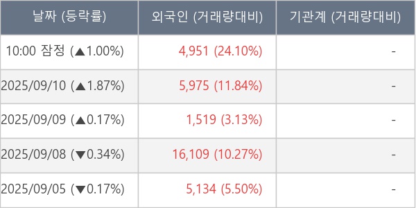 [표] 외국인ㆍ기관 순매매량 (단위 주)