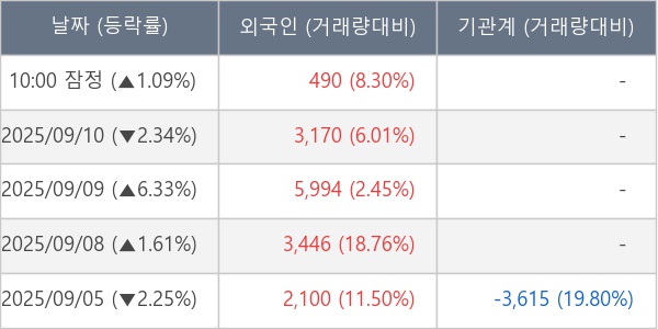 [표] 외국인ㆍ기관 순매매량 (단위 주)