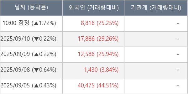 [표] 외국인ㆍ기관 순매매량 (단위 주)